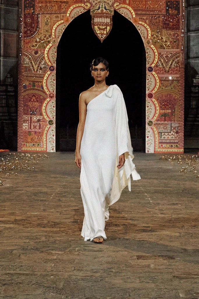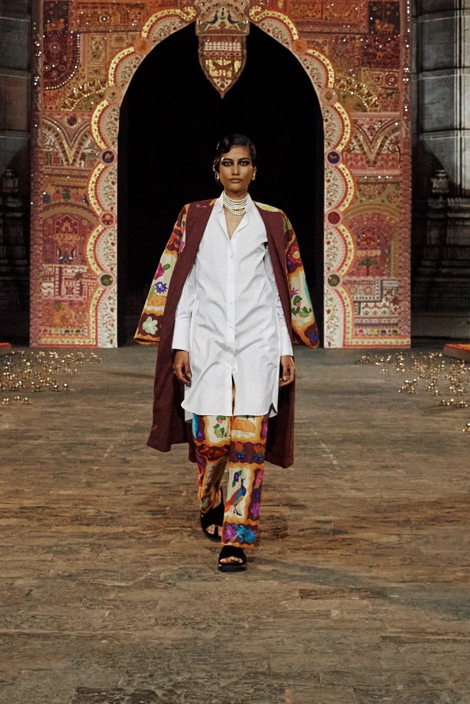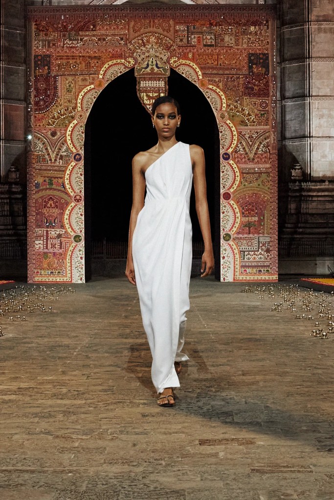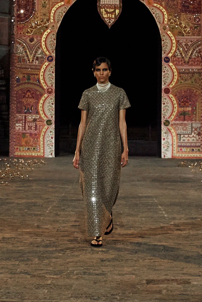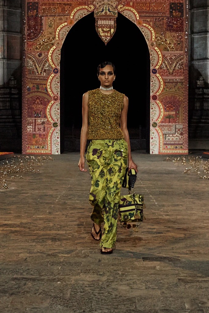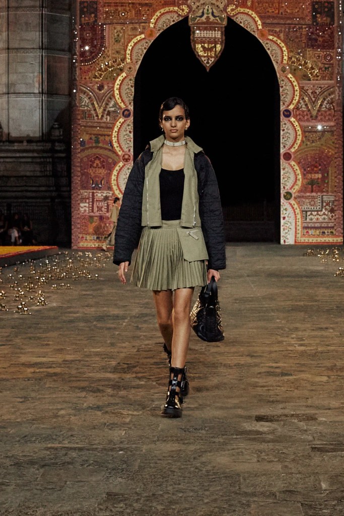 This collection was full of excitement. I love how it had lots of Indian influence on it as it was shown in India. Comparing this to the Chanel show in Dakar, I feel this one had more inclusivity in the country. The looks were really mixes of French and Indian out of all the looks I picked a few that really stood out to me and were nicely mixed upon both cultures.