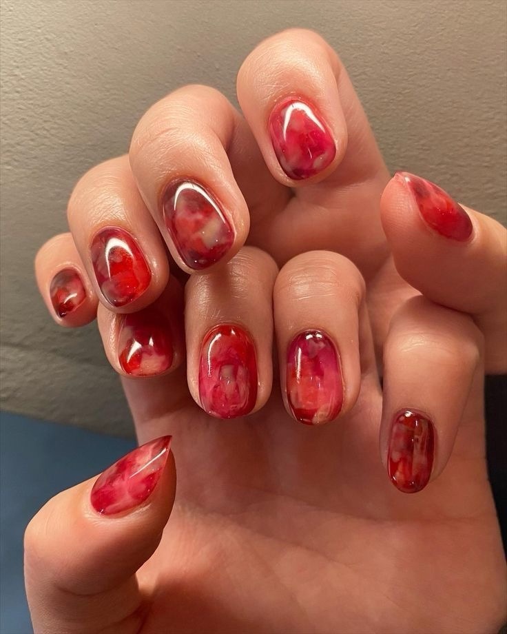 Bring a pop of color to your fingertips with a palette straight out of a pastel paradise. Soft blues, minty greens, and blush pinks are stealing the spotlight this season. Whether you opt for a solid pastel hue or mix and match, these shades are a surefire way to keep your nails on-trend. - Artsy Abstracts: